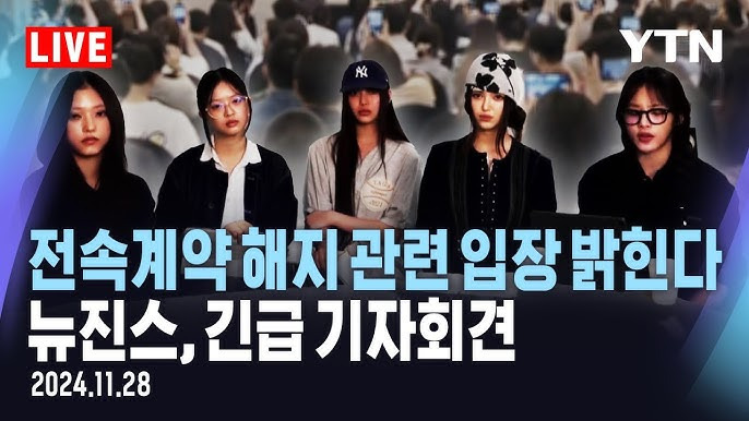 [3] 조선일보 - 뉴진스, 오늘 긴급 기자회견...'전속계약 해지' 입장 밝힌다 (https://www.chosun.com/national/people/2024/11/28/6OX2NGMCGFBAFON5KRO6IXNLJI/)