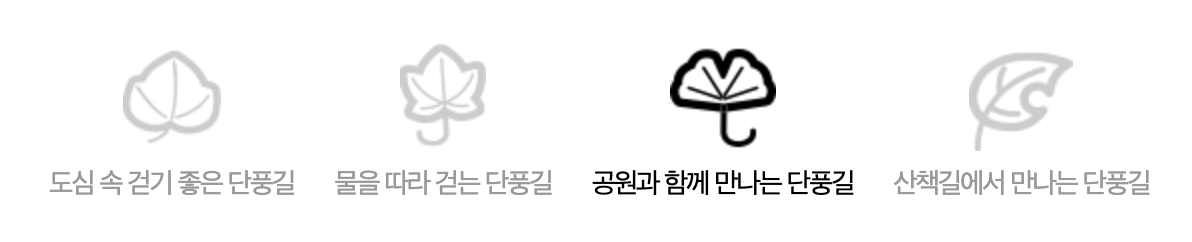 홈페이지에서 확인하시면 , 서울의 가을 단풍 명소를 도심,물,공원,산책길 로 나눠서 소개하고 있습니다.